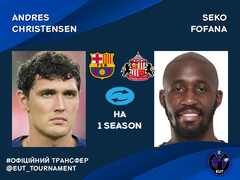 Seko Fofana (Сандерленд) AND Andres Christensen (Барселона)