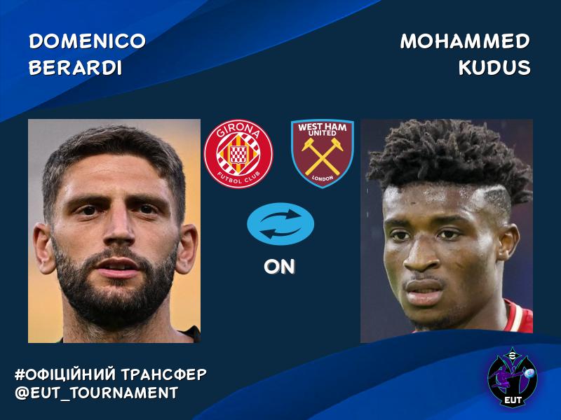 Mohammed Kudus (Вест Гем) AND Domenico Berardi (Жирона)