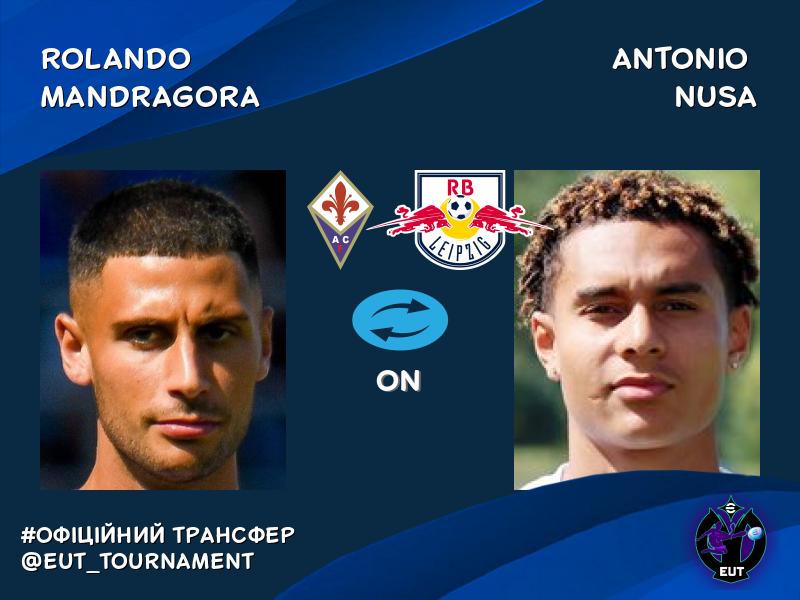 Antonio Nusa (РБ Лейпциг) AND Rolando Mandragora (Фіорентина)